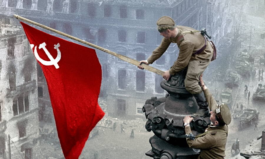 На экране проявилось черно-белое изображение, потрескавшееся от времени, но невероятно живое. Двое уставших, но счастливых солдат в советской форме устанавливали знамя на крыше разрушенного здания. Были видны дым, копоть, следы жестокого боя. Это была не постановка. Это была правда. Запечатленный миг победы. Их победы.