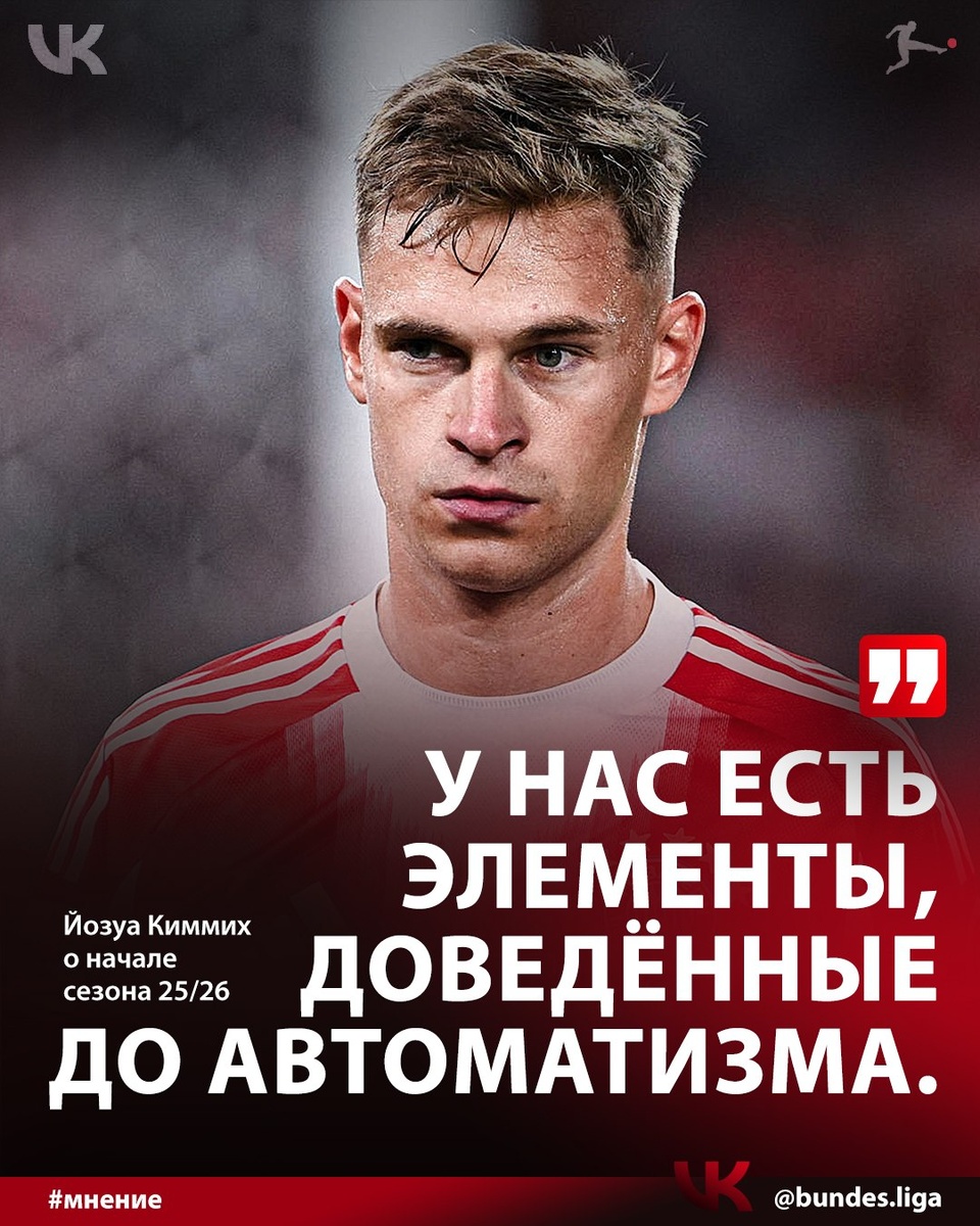 ⚡ Игрок «Баварии» Йозуа Киммих прокомментировал игру с «РБ Лейпциг» (6:0) 💬 «Это был очень хороший старт сезона. Не только по результату, но и по тому, как всё прошло, сегодня всё было здорово. Мы сохраняли высокий уровень интенсивности. Очевидно, что мы были не так уж и голодны в первые 10 минут второго тайма, но «Лейпциг» прибавил, и благодаря единственной контратаке, которая довела счёт до 4:0, мы смогли изменить ход встречи. 📝 Наш нынешний старт чемпионата сильно отличается от многих предыдущих сезонов. В этот раз есть ощущение, что мы начинаем сезон с определённой базы. Предыдущие сезоны всегда были нестабильными: у нас было много смен тренеров, мы начинали с 0. В этом сезоне видно, что у нас есть элементы, доведённые до автоматизма, а также определённые установки, которых все придерживаются», — приводит слова Киммиха Sky Sport Germany.