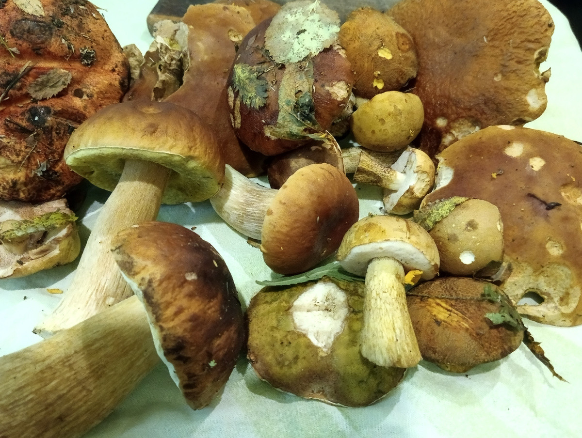 Вчера муж с сыном ездили в лес. Это так называется поездка на электричке . Вологодские леса богаты и грибами и ягодами. Уехали рано в 8 часов утра. Электричка Вологда- Буй. Это примерно 50 км от нас ,надо сойти на станции Бушуиха и они прошли за день 20 км , не меньше. Я мужа жду с охапкой грибов ,серых и белых ,а они мне потом звонят,что грибов нет. Хотя севернее ,в Семигородней , у нас там сваты, Лена вчера корзину белых набрала за час ,рядом с деревней . Ну что тут скажешь. Потом уже я мужу дозвонилась ,к вечеру и он мне сказал ,что набрал немного белых на жаренину и остальное лисички. Это очень хорошо. Запах обалденный ,пахнет лесом,многие грибы ещё в листочках. Это особенный запах леса. Грибы быстро почистили ,картошка у меня уже тоже была готова и на сковородку их ,дорогих гостей. Вот такие крупные красавцы были. А потом перебрали лисички ,промыли поставили из отваривать. Вот уже перебрали. Варили в двух 5 литровых кастрюлях и получилась в итоге