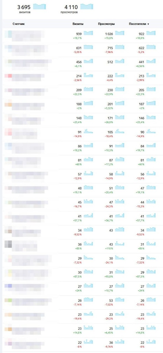 И вот так умные ребята зарабатывают на РСЯ. Это не все сайты (скрин Я.Метрика). Их сильно больше. Сайты сделаны с помощью ИИ, контент сделан с помощью ИИ - трафик собирается, реклама показывается, бабульки капают...
