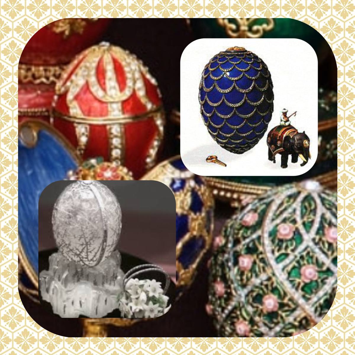 · Детали: На создание одного яйца уходил целый год работы лучших мастеров. Они использовали не только золото и бриллианты, но и карельскую березу, горный хрусталь, редкие сорта нефрита.