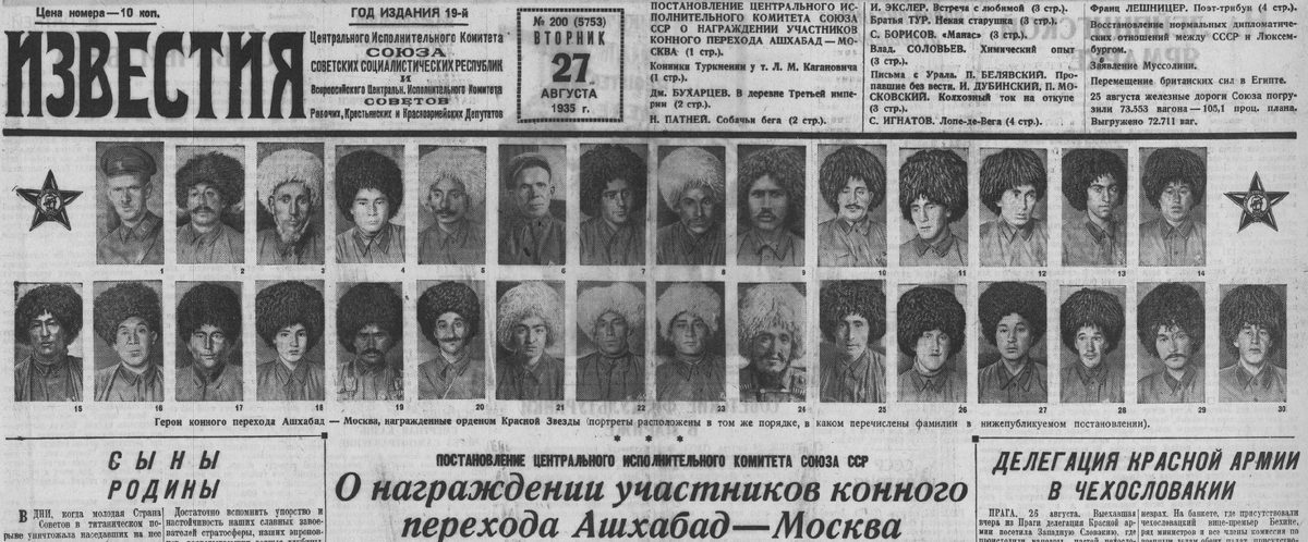 «Газеты – консервы времени» (Карл Краус) Фантастическое по задумке и воплощению достижение. Небольшой отряд туркменов-джигитов верхом покрыл 4300 километров за 84 дня, преодолев сотни километров безводных пустынь, бескрайних степей и лесов. Переход преследовал не только пропагандистские цели. Он во многом повторял быт и стремительность монгольских завоевателей, чья конная орда в 13 веке докатилась до Европы. 27.08.1957 – Известия 27.08.1935 – Известия 27.08.1937 – Известия 27.08.1975 - Вечерняя Москва 27.08.1990 – Вечерняя Москва Страна осторожно встает на путь рыночной экономики. 27.08.1940 – Комсомольская правда Британцы впервые бомбардируют Берлин, к маю 1945 немецкая столица переживет 364 налета и будет разрушена почти на 60%. Берлин весной 1945 года. 27.08.1904 – Петербургский листок 27.08.1957 – Известия Первый рейс советского судна на подводных «Ракета». 27.09.1937 – Известия Константин Кайтанов совершил первый в истории человечества парашютный прыжок из стратосферы. 27.08.19