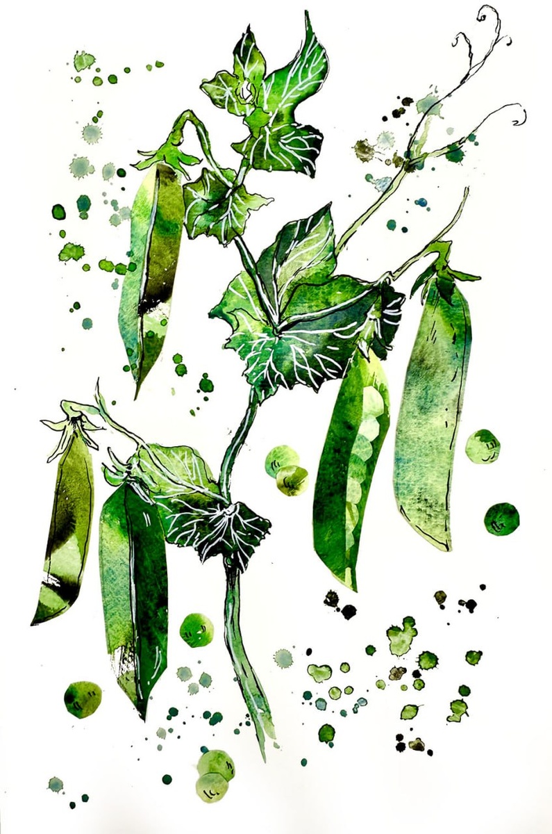 🌿 Создадим абстрактные акварельные фоны, из которых «вырастут» нежные скорлупки горошка в коллаже. Поработаем с фактурами, пластикой формы и добавим выразительную графику и заливки акварелью для контраста и живости