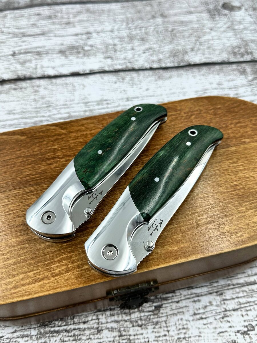 📸 Складной нож «Корвет» — в наличии 🌲 Лимитированная партия — открыта свободная продажа Идеальный выбор для охоты, рыбалки, туризма и коллекции. Основные преимущества — Клинок из инструментальной стали Х12МФ с криообработкой — Твердость 61–62 HRC — уверенно держит заточку! — Рукоять накладки из стабилизированной карельской берёзы глубокого зелёного оттенка. — Надёжный замок Liner-lock — максимально безопасно при любых условиях. — В комплекте — ножны из натуральной кожи Дополнительно можем изготовить формованные ножны (+8 000₽). Цена за первый и второй нож: ~9 980₽~ → 8 983₽ по акции 💬 Заказать просто • Пишите @Nazarklinokbot • WhatsApp/Viber: +7 910 134-38-31 #корвет #складнойнож #Х12МФ #карельскаяберёза #купитьнож #КузницаНазароваВВ