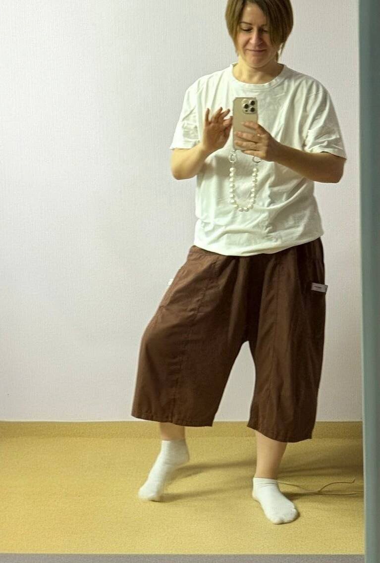 Сегодня попала на тайский массаж и получила вот такой шикарный костюм для массажа 🧘♀️ так сильно мне понравились шорты, что решила срочно к следующему отпуску приобрести такие же. Решила спросить @StilistaBot - как они называются? И вот что он написал: Очень стильный и непринуждённый образ! Белая футболка и свободные коричневые шорты отлично смотрятся вместе, создавая ощущение комфорта и лёгкости. Такой аутфит хорошо подойдёт для отдыха, прогулок или домашней атмосферы. 👍 Фасон шорт, который вы выбрали, называется «галифе» или «шаровары» (иногда их ещё называют drop-crotch shorts, т.е. с заниженной линией паха). Они подходят для создания расслабленных, бохо-луков и добавляют индивидуальности любому образу. Как вам такое бохо? 😊✨