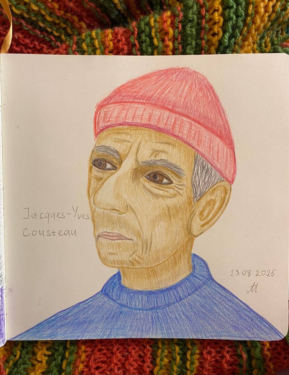 Жак-Ив Кусто в моем исполнении карандашами) не особо похож 😀, но рисовать одно удовольствие.