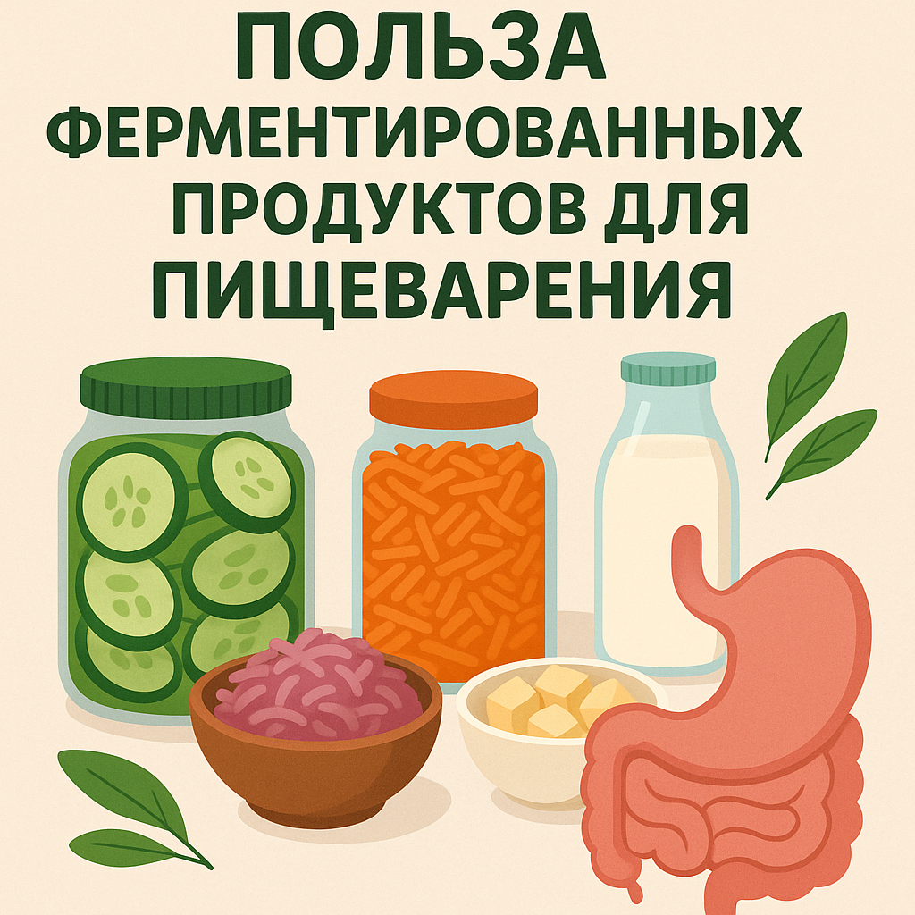Ферментированные продукты уже тысячи лет входят в рацион разных народов и сегодня получают всё больше признания благодаря доказанному положительному влиянию на пищеварение. Опираясь на данные исследований, рассмотрим, что такое ферментация, как она работает и какие преимущества приносит вашему ЖКТ. Что такое ферментированные продукты? Ферментированные пищевые продукты — это продукты, приготовленные посредством роста микроорганизмов и ферментативного превращения их компонентов. В процессе ферментации бактерии и дрожжи преобразуют углеводы, белки и другие вещества, создавая богатую пробиотиками и биоактивными соединениями среду. Как они действуют? - Микроорганизмы из ферментатов образуют пробиотики, которые заселяют кишечник, создавая защитный слой и подавляя патогены. - Ферментированные продукты содержат готовые пищеварительные ферменты и короткоцепочечные жирные кислоты, облегчающие расщепление пищи и усвоение питательных веществ. - Во время ферментации увеличивается концентрация вит