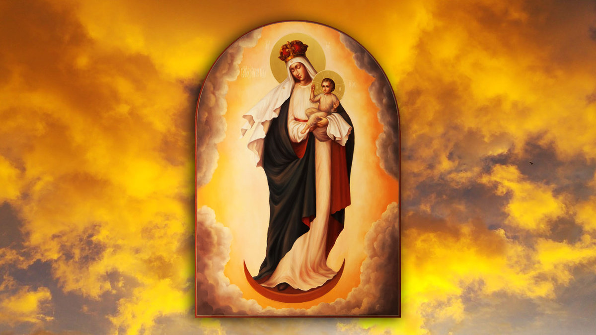 «И явилось на небе великое знамение: жена, облеченная в солнце; под ногами ее луна, и на голове венец из двенадцати звезд» (Откр. 12:1).