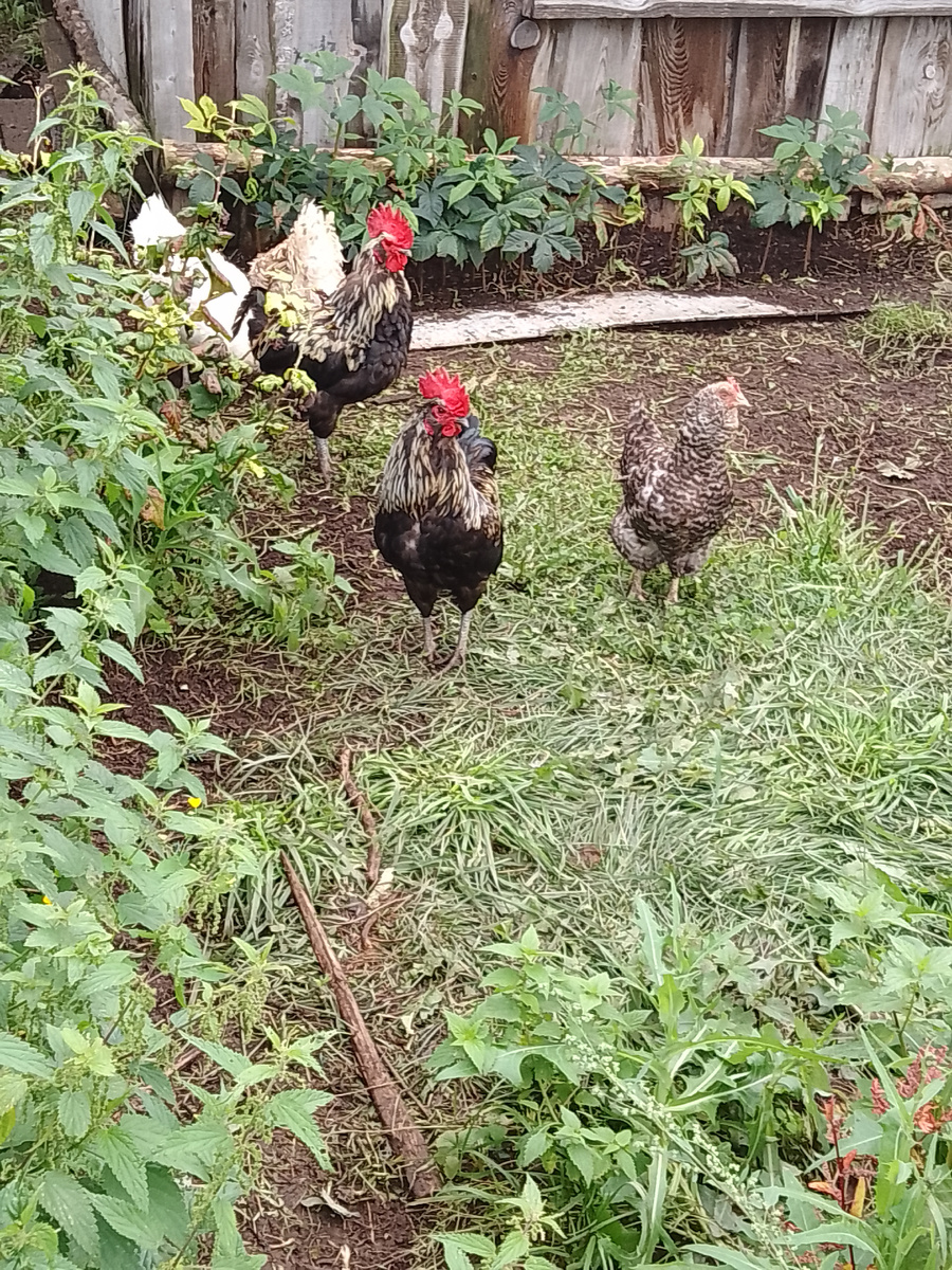 У нас дожди зарядили. Слизняков в этом сезоне тьма-тьмущая. И на капусте и на тропинке и в мешок с комбикорм залезут и сдохнут там же обожравшись. Траву не успеваешь скашивать, на клубнику махнула рукой еще в июле. Так и не смогла ее прополоть. Как бороться с сорняками и слизняками. Решила курами. А чего, траву вытаптывают, слизняков собирают. Очень даже хорошее средство. Так то у меня куры загонные, то есть живут в загоне. Вообще кура птица наглая. Любит в грядках поковыряться, лук выщипать или еще нагадить в прямом смысле. Она ж не контролирует свои естественные процессы. Поэтому в период рассады, а это май, июнь куры живут в загоне. В августе и всю осень у меня куры на вольных хлебах. Но за зиму они забывают, где входы и выходы из загонов. И могут заблудиться. Поэтому приучаю к выгулу постепенно. Начинаю выпускать на полчаса, потом время увеличивается, и так оставляю на весь день Куры умные, знают где дом и гнезда, очень редко несутся за пределами курятника.Петух обычно контролиру