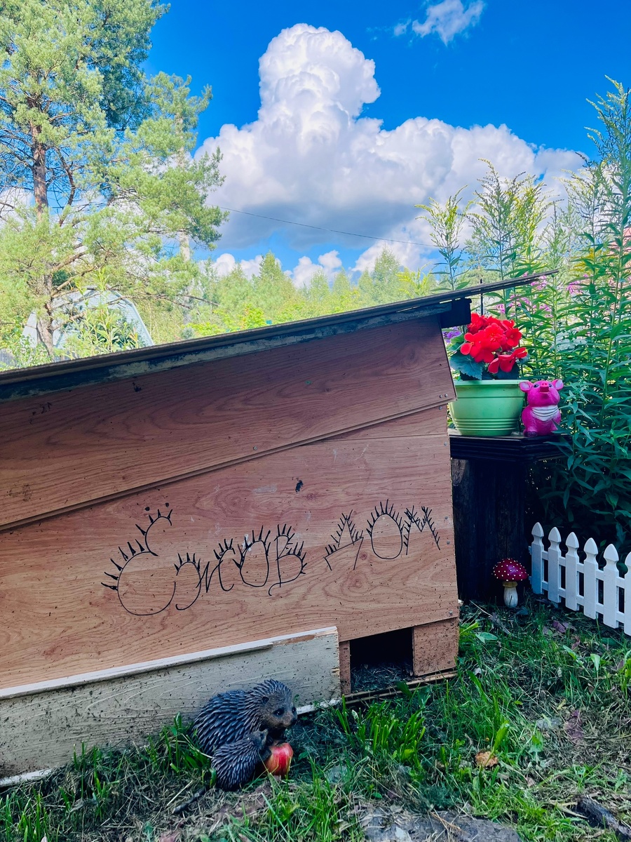 Вот такой домик построили для семейства ёжиков, ходят в гости и на обед по расписанию) Постим в укромное место, а там они сами решат, как им быть) По наблюдениям специалистов, ежи всё чаще переселяются из леса поближе к человеческому жилью: тут и сытнее, и спокойнее в плане отсутствия врагов. Ёжиков стоит окружить заботой: слегка подкармливать (слегка! А то он перестанет искать и уничтожать слизней, гусениц и майских жуков), не беспокоить, если обнаружено место дневного отдыха. И обустроить ему место для зимовки — домик, утеплённый шалашик, землянку, пещерку — в зависимости от фантазии хозяина, дизайна сада и удобства для ёжика. У моих родителей очень неплохо обосновалась ежиха в куче сфагнума. Замечательный вариант: тепло, сухо, тихо. Мышей в саду ёжик, конечно, не переловит, скорости у него не хватает их догонять, а вот мышиные выводки найдёт и проредит, старших же запахом отпугнёт. Насчёт запаха стоит сказать отдельно. Запах у дикого ёжика специфический. Ещё и поэтому в дом его луч