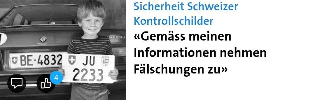 📌 " Безопасность швейцарских номерных знаков: «По моим данным, количество подделок растёт