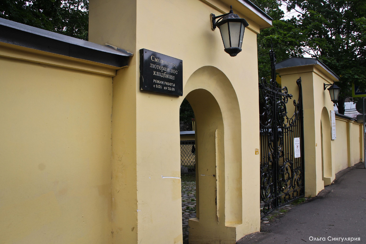 В этом году сбылась моя мечта – я побывала на питерских кладбищах! Правда, удалось посетить всего два, но и это много. Сегодня расскажу про Смоленское лютеранское (другое название – Немецкое). Основано в 1747 году (278 лет назад!), изначально предназначалось для захоронения иностранцев иной веры. Ориентировочно здесь похоронено порядка 30 тысяч человек. После революции на кладбище упокоились и жители советского Ленинграда. В конце 20 века кладбище пришло в запустение, и его посетители могут наблюдать это своими глазами. Роскошные надгробия и склепы разрушены, надписи сложно прочитать, у редких скульптур не хватает головы или рук. Удивительно, но при этом некоторые памятники являются объектами культурного наследия и находятся под охраной государства. Этот склеп встречает посетителей на входе. Ходить по кладбищу на каблуках не советую – каменная брусчатка не очень удобна для прогулок. Но она добавляет атмосферы. Надпись для администрации. Надпись от администрации. Склеп генерал-майора Ал