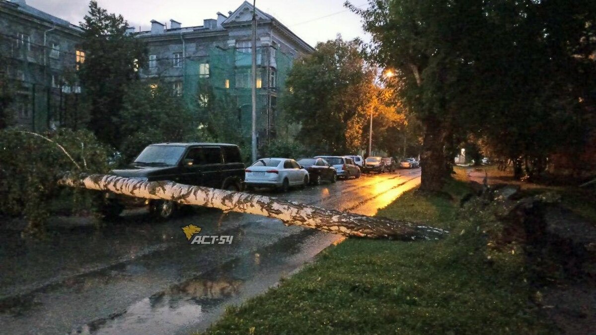 Упавшая берёза в Новосибирске перекрыла движение на Краснодонском переулке