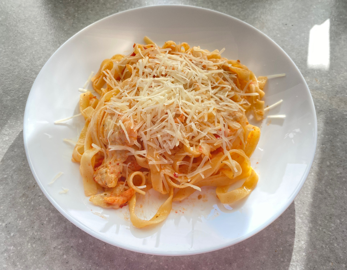 Как же мне хочется в Италию… но пока такой возможности нет, приготовлю кусочек Италии дома) Я обожаю пасту в любых ее интерпретациях! Сегодня я решила побаловать себя и мужа пастой с сыром камабер, креветками и черри. Могу с уверенностью сказать, что это один из самых простых, и в тоже время вкусных рецептов) Самое сложное и долгое в этом блюде - это почистить креветки, если они у вас целые) Если же вы взяли уже чищенные, это максимально упростит вам процесс приготовления пасты) Значит берем чищенные креветки, черри, сыр камамбер и выкладываем все в форму для запекания. Сыр камамбер мы нарезаем и втыкаем в серединки кусочки чеснока. Всю эту красоту мы поливаем оливковым маслом, посыпаем приправой и убираем в духовку, предварительно разогретую до 200 градусов, на 15-20 минут. В кипящую, подсоленную воду мы кладем пасту, и варим согласно предложенному на упаковке способу) Когда наши ингредиенты запеклись, хорошенько все перемешиваем. Когда паста готова, мы ее промываем в дуршлаге и
