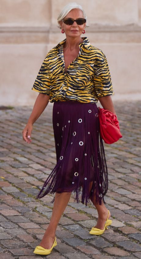 Юбка является одним из основных предметов дамского гардероба. Она позволяет создавать женственные и притягательные образы в разное время года. При выборе того или иного фасона стоит учитывать не только тенденции и особенности фигуры, но и возраст. Принтованная. Далеко не все рисунки актуальны и подходят для зрелых дам. К примеру, от моделей в мелкий горошек или цветочек лучше отказаться. А вот анималистичный принт допустим. К примеру, можно составить образ из юбки с узором «зебра» до колен, майки или футболки горчичного оттенка и светлого жакета без застежек. Белые кроссовки прекрасно впишутся в образ. Джинсовая. Юбка из денима не теряет актуальности. Женщинам 60+ не стоит носить слишком короткие и, наоборот, слишком длинные модели. Идеальный вариант – прямой крой, темно-синяя расцветка, длина до колен или чуть ниже. Для стильного образа стоит добавить белую футболку и туфли на каблуке в тон юбке.