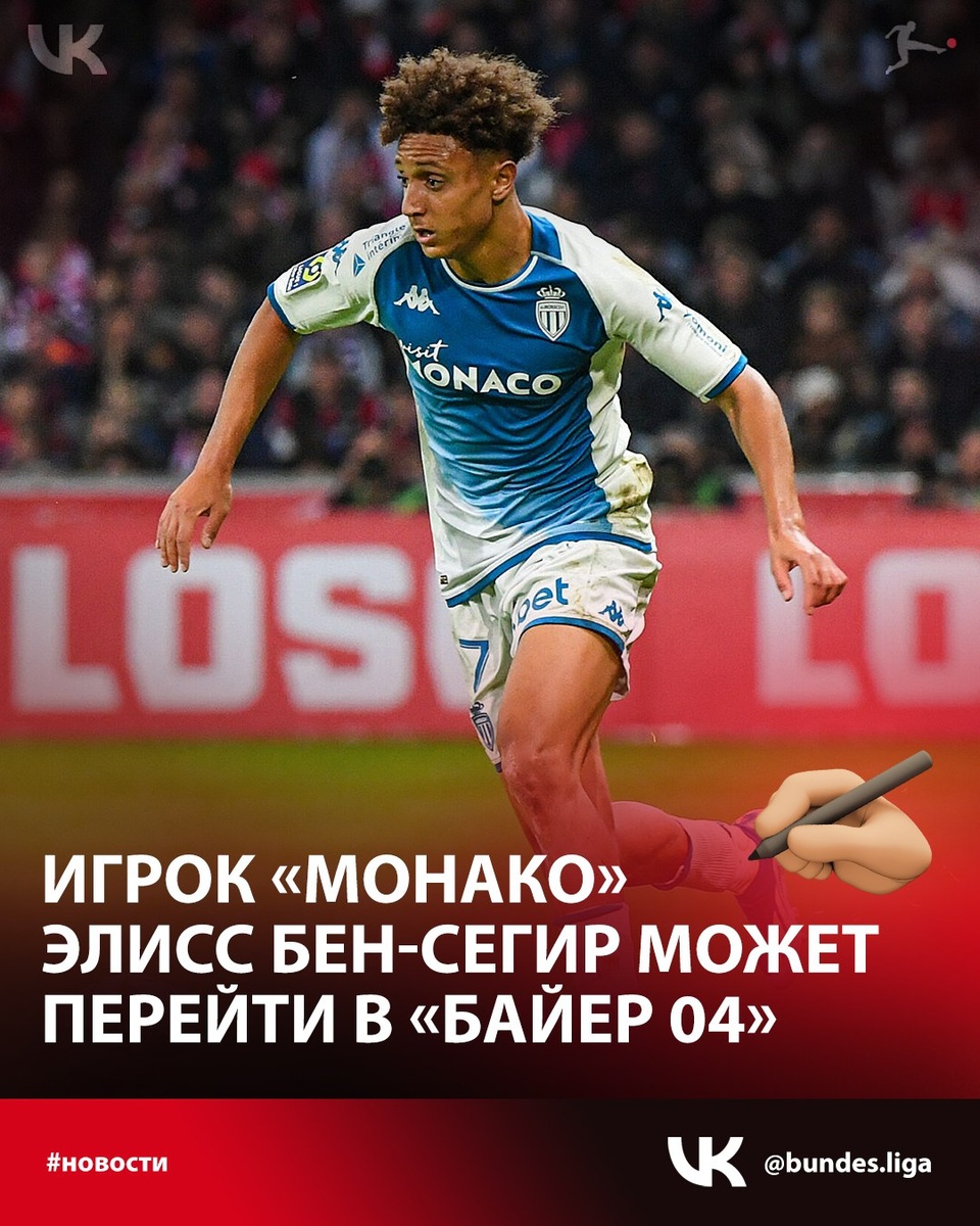 ✍ Игрок «Монако» Элисс Бен-Сегир может перейти в «Байер 04», сообщил журналист Флориан Плеттенберг