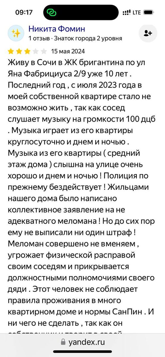💥🔖Мне ☎️ девушка из Москвы и просит взять её квартиру в Сочи в продажу, так как агентство(которому она поручила продавать) пропало с радаров. При анализе данного ЖК наткнулся на такие отзывы(они на фото), и решил, что пост мой будет о соседях. Я всегда "За" работу по рекомендациям, и считаю, что репутация риелтора - это его банковский счёт, его безбедное будущее, его опора. Конечно можно впихивать невпихуемое своим клиентам - после нас хоть потоп. Но мы же с вами понимаем, что у клиента всегда будет виноват тот человек(вы), который предложил этот вариант. Не сам клиент, который принял решение, но риелтор, который способствовал тому, чтобы клиент принял решение. И это будет даже если вы провели клиенту идеальную сделку: нашли квартиру с ремонтом, выгодную ипотеку, помогли с оформлением и тд.. А потом вам звонят и кричат в трубку: «Вы нам подсунули ад!» Оказывается, сверху топят алкаши, слева круглосуточно лает собака, а справа — приличная вроде семья, но 24/7 бьётся посуда и вечные ск
