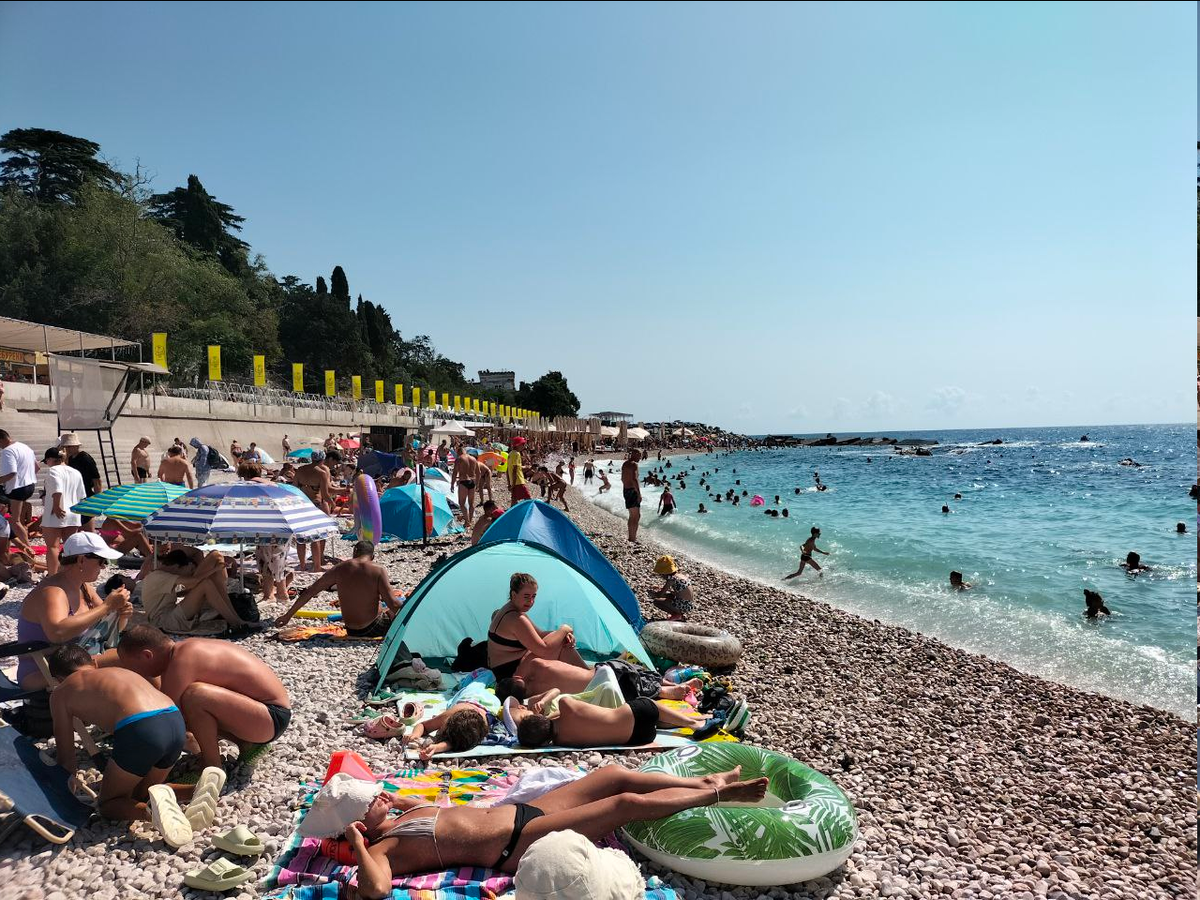 Пляжи Крыма популярны и надо признать многие очень хороши. Большой минус в особенностях побережья. На ЮБК они маленькие и каменистые, засыпают их галькой. В сторону Евпатории от Севастополя уже песчаные пляжи или с мелкой галькой, более протяженные. Конечно все приезжие бегут на ближайшие благоустроенные городские пляжи, которые есть в любом городишке или поселке от Керчи до Тарханкута. Но так ли удобно и комфортно на них отдыхать. Может кому-то все равно, он (она) разлягутся в форме морской звезды и им без разницы, как люди через них перешагивают. Да и просто тесниться, самим перешагивать и обходить кого-то, если решили подойти к воде и искупаться. ...так себе удовольствие. Опять приехали в Симеиз и совсем непохоже, что туристы разъезжаются, как писали в некоторых крымских новостных тг-каналах. На пляже, как селедки в банке - И это примерно половина одинадцатого утра. Дальше было хуже, но мы вовремя оттуда свалили. Намного ли лучше делают эти пляжи переизбытком благоустройства и развл
