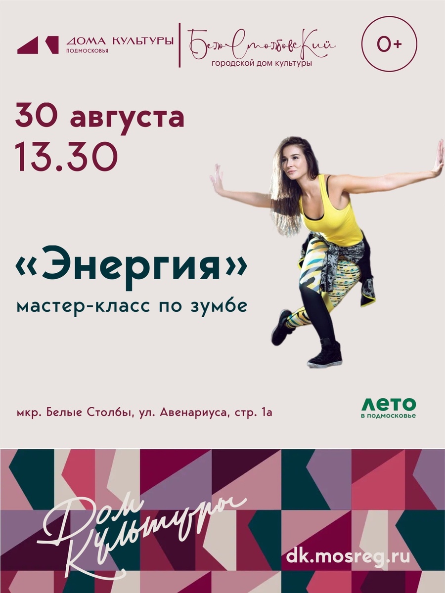 ✨ ☝️ЗУМБА - самая популярная фитнес-программа в мире! Лучший способ похудеть без жёстких тренировок и диет! Танцуй и худей вместе с нами! 🚫 Возраст: 0+ 📆 30.08.2025🕒13:30 🏢 Белостолбовский городской Дом культуры (ГДК) 📍 г.о.Домодедово, мкрн.Белые Cтолбы, ул. Авенариуса стр. 1а 💰 Вход свободный❗️ ✅ Мероприятия Домодедово https://dzen.ru/id/66f10385cc4c5a16f7b5fb02 http://vk.com/domodedovo_events http://dzen.ru/domodedovo_events
