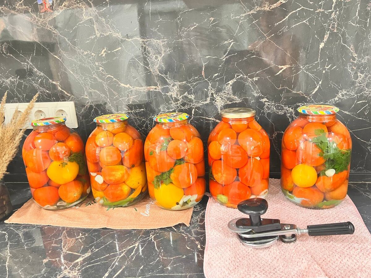 Кто любит закатки в больших объемах, то это то, что нужно Ингредиенты: Для одной трёхлитровой банки вам понадобятся следующие ингредиенты: - Помидоры – около 2 кг свежих помидор средней величины. - Вода – примерно 1,5 литра кипячёной воды. - Соль – 1 столовая ложка без горки. - Сахар – 5 столовых ложек. - Лимонная кислота – половина чайной ложки. - Петрушка – небольшой пучок свежей зелени. - Перец горошком – 8–10 штучек чёрного перца. - Морковь – одна небольшая морковка, перец - 1/3 шт. - Лук репчатый – одна средняя луковица. Пошаговое приготовление: 1. Перед началом процесса консервации тщательно промойте все овощи и зелень проточной водой. Очистите лук и морковь от кожицы, а затем порежьте кольцами лук и нашинкуйте морковь на крупно. 2. Обязательно простерилизуйте стеклянные банки и крышки любым удобным способом: прокипятив их в воде, обработав паром или прогретые в духовке. Это обеспечит безопасность хранения заготовок зимой. 3. Аккуратно уложите помидоры в стерильные банки, пр
