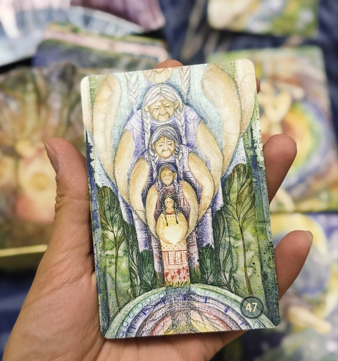 Сегодня вспомнилась мне это карта, раскрыла почитать… Никогда не задумывалась о череде дней рождений в августе. 17.08 бабушка (мамина мама) 23.08 мама 31.08 у меня В этом году вижу особый узор со всем этом сплетении. Энергии женские очень мощные заходят на землю, практически две недели плачет мой левый глаз, да и родовой высвобождается через любовь и благодарность. Письмо, посланий из карты ⬇️ За твоей спиной сотни сотен душ. Матерей матерей матерей матерей... Каждая из них прошла свой путь от младенчества до старости, чтобы теперь свой путь прошла Ты. Эта цепь никогда, ни разу не прервалась! Посмотри, почувствуй, сколько силы, любви и жизни за твоими плечами! Невероятная мощь, лавина, бесконечная река человеческих жизней, в которой течёшь и ты. Бери, всё твоё. Отдавай, всё их.
