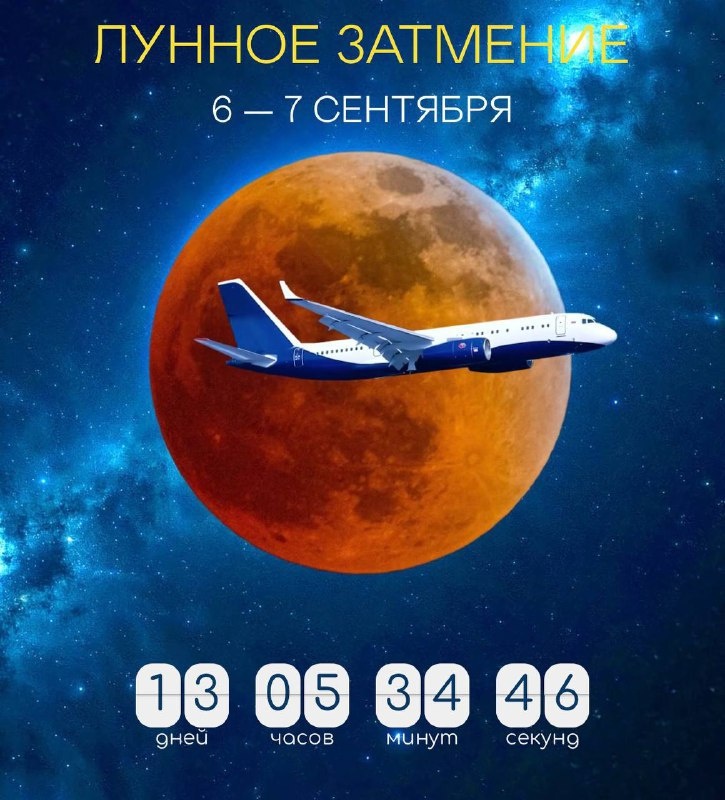 Лунное затмение можно наблюдать прямо из окна самолета — 7 сентября из Москвы отправляется рейс, специально организованный для этой цели