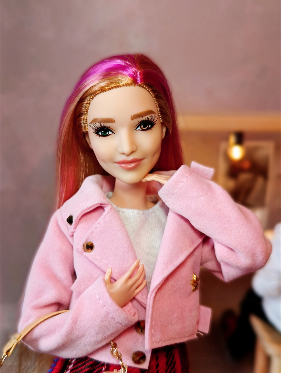 Лекси (Барби Dreamtopia) приобрела окончательный облик и теперь обладает более миниатюрными параметрами, а также удивительным взглядом. Эти перемены поспособствовали началу истории с участием моих кукложителей и не только. Итак, одним прохладным августовским вечером, когда за окном медленно капал дождь, а улицы были озарены мягким светом фонарей, Лекси зашла в маленькое уютное кафе на окраине города. Оно называлось "Долгие вечера" – тихое, почти незаметное место с запахом кофе с корицей и старых книг. Лекси любила такие места: тихие, без суеты, где можно было выпить чашку капучино и почитать или просто понаблюдать за людьми. Её взгляд случайно скользнул по залу и остановился на молодом человеке в очках с яркими волосами. Он был в белой рубашке и черных брюках, волосы уложены в модную прическу, а на столе перед ним – телефон, в котором, судя по всему, он сочинял на ходу тексты песен в "заметках". Лекси замерла. – Дэян? – тихо произнесла она, не веря своим глазам. Молодой человек вз