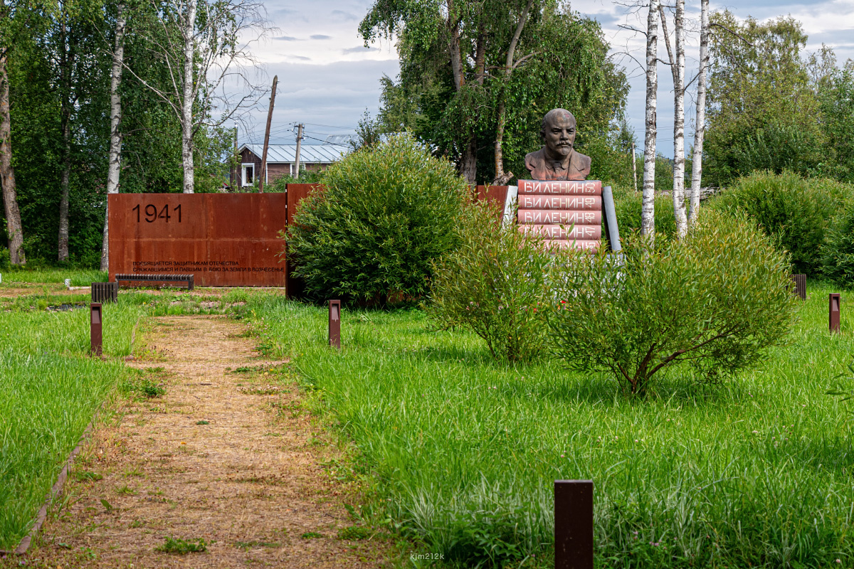 Наш паром отчалил как раз в тот момент, когда мы подъехали к берегу. Стенд с расписанием гласил, что рейсы выполняются раз в час. Отлично, решила я, есть часок прогуляться по местным достопримечательностям: парку и набережной Свири, посмотреть, где начинается Онежский канал. Мои все никуда идти не захотели и остались ждать следующий рейс в машине, а я отправилась в расположенный недалеко от причала Комсомольский парк. В парке находится один из самых оригинальных памятников Ленину - бюст вождя стоит на стопке томиков из собственного собрания сочинений и "Капитала" Маркса. Из воспоминаний местного учителя и краеведа Павла Савича Юдина: «...было прин