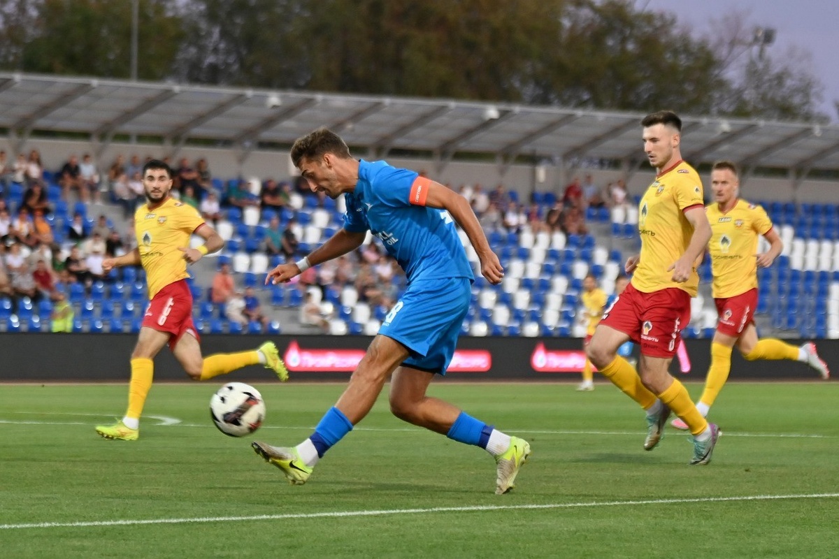 Футболисты «Арсенала» одержали вторую победу в сезоне. В воскресенье, 24 августа, в 6-м туре чемпионата Первой лиги подопечные Дмитрия Гунько на выезде с крупным счётом 3:0 выиграли у «Чайки» из Песчанокопского Ростовской области. В первом тайме туляки чуть больше владели мячом, но по голевым моментам – равенство. Сначала голкипер «Чайки» Семён Фадеев парировал опасный удар Амура Калмыкова, а спустя несколько минут удал Николая Ищенко пришёлся в перекладину ворот туляков. «Арсенал» открыл счёт на 60-й минуте – прострел слева от Алана Цараева замкнул Амур Калмыков, забивший пятый гол в сезоне. Ещё через 13 минут результат удвоил Милош Брнович – он добил мяч в ворота после удара Игоря Горбунова. А в компенсированное время Брнович оформил дубль – цели достиг его удар с линии штрафной. В следующую субботу, 30 августа, тульские футболисты в Ульяновске сыграют с «Волгой». Встреча начнётся в 16 часов. Фото пресс-службы ФК «Чайка»