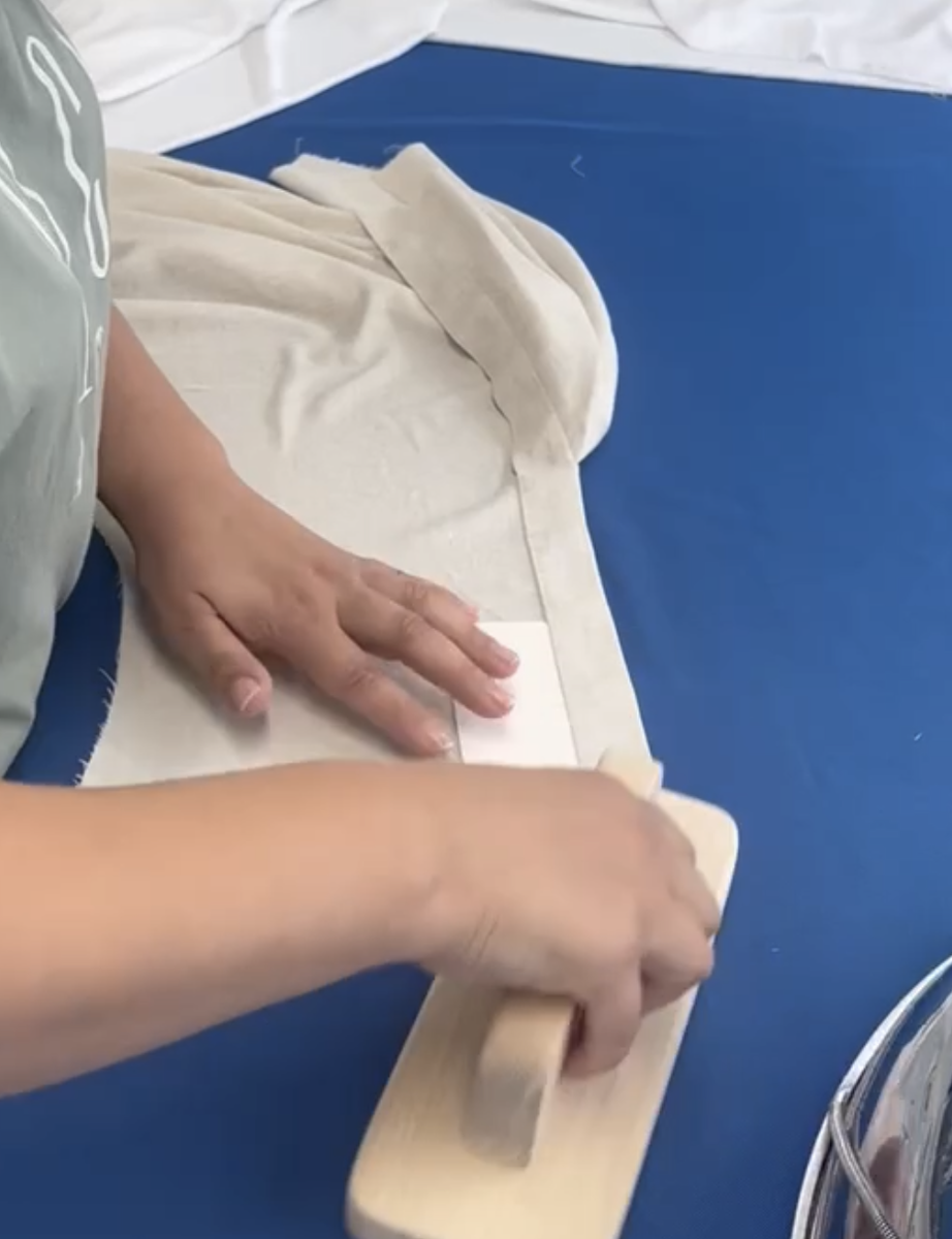 Прессование применяется для утончения материалов, краев деталей, складок и обработки швов.