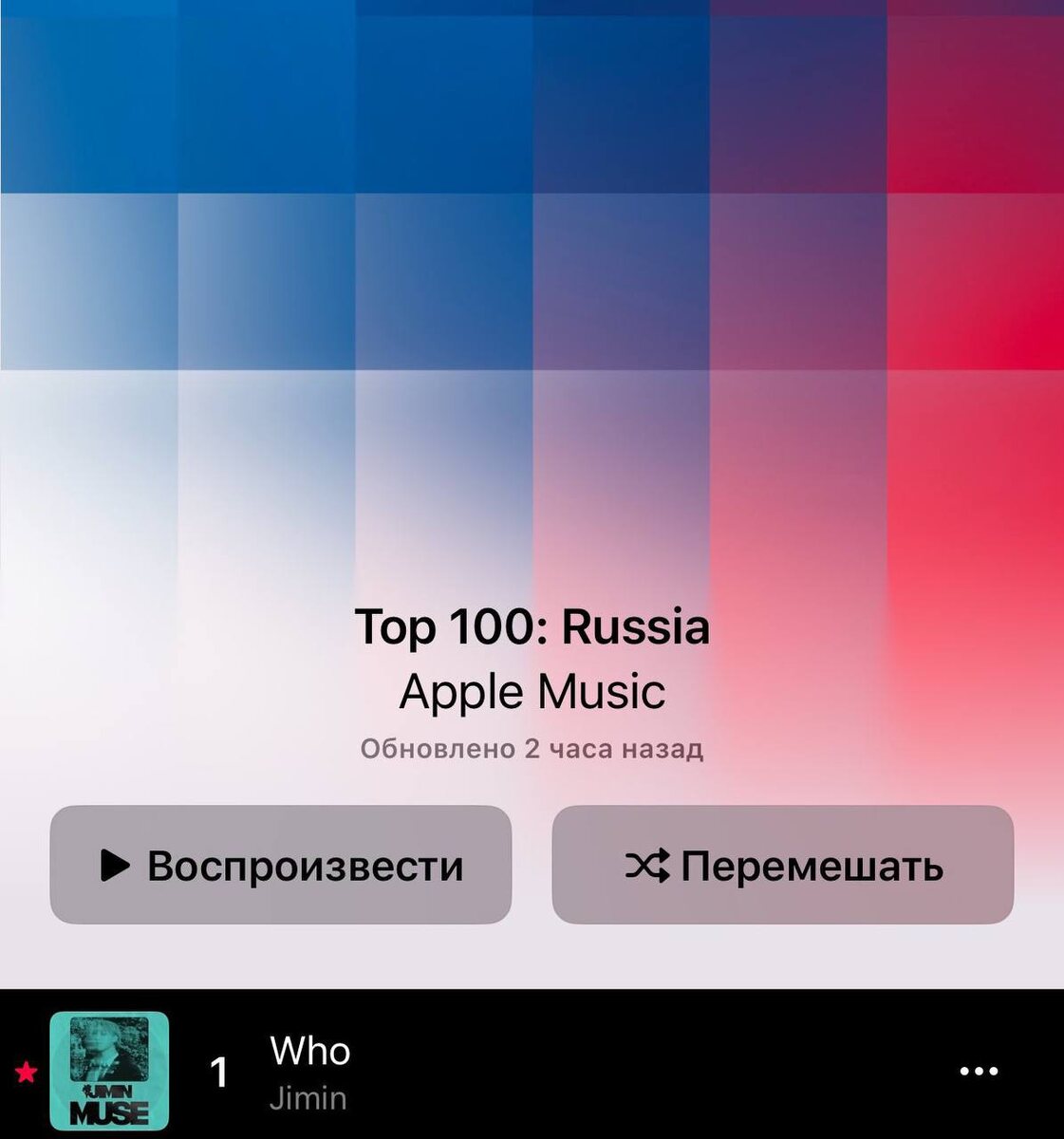 🔮 Песня Чимина "Who" возглавила чарт Apple Music Top 100: Россия