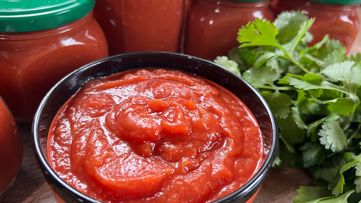 На потребуется: 1,5 кг кабачков 0,5 кг репчатого лука 2 ст. л. соли 250 гр. Сахара Кабачки и лук порезать кубиками. Добавить соль, сахар и дать постоять 10 минут, чтобы кабачки дали сок. Затем добавить (предварительно завернув в марлю) 4 лавровых листа и 4 гвоздики. Поставить на огонь и довести до кипения. Варить 30 минут на среднем огне. Потом вынимаем лавровый лист и гвоздику. Пробиваем блендером Добавляем 120 гр. 9% уксуса и 500 гр. Томатной пасты. Доводим до кипения и варим еще 15 минут. И в банки!!!