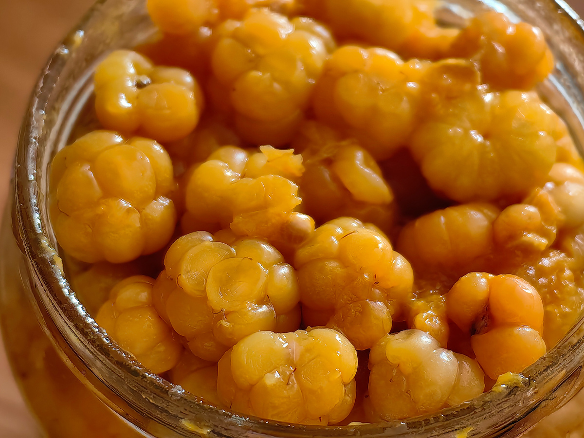 Морошка прекрасно хранится в собственном соку, также из нее готовят варенье, настойки. В нашем путешествии по Архангельской области мы тоже ели морошку. Стоит она в районе 1500 рублей за килограмм.
