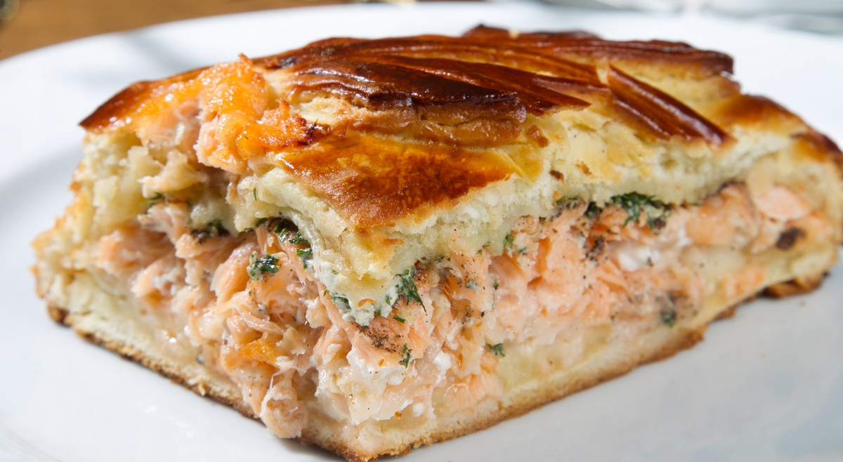 Красная рыба (лосось, форель или нерка) богата Омега-3 жирными кислотами и белком, а в сочетании с ароматной зеленью она превращается в неотразимое блюдо. Вполне удачно оно сочетается с нежным тестом, которое, запекаясь, приобретает золотистую корочку. А благодаря заливке пирог получается сочным, с мягкой текстурой внутри и хрустящей — снаружи.