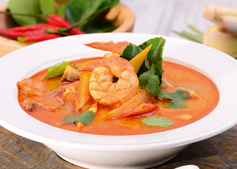 Том Ям – знаменитый тайский острый и кислый суп с креветками. Этот суп особенно популярен благодаря яркому сочетанию острых специй и пряного бульона. Базовый бульон готовится на основе куриного или рыбного бульона с добавлением лемонграсса, галангала, лайма и чили. Варианты Том Яма бывают прозрачные (нам сай) и «кремовые» (нам кон) – с кокосовым или сгущённым молоком. У нас мы готовим классический острый «том ям гунг» с креветками.