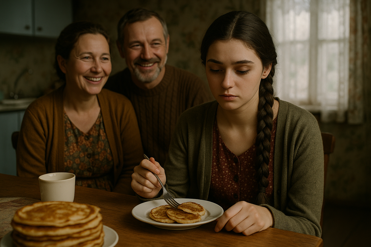 А я сидела за родным кухонным столом, ела блинчики и думала — через час-два этот мир рухнет. Их спокойная размеренная жизнь перевернётся, как перевернулась моя.