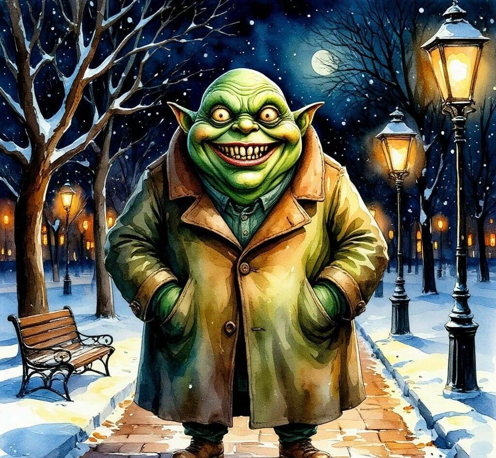 Иду по заснеженной аллее укутанная вся в теплые одежды и чувствую, что сзади кто-то подкрадывается. Полуобернувшись вижу большую, толстую особь похожую на слизня коричнево-зеленого цвета и тоже одетого в пальто, которая расплылась в омерзительной улыбке и пытается навалиться на меня и подключиться к моему энергетическому полю.