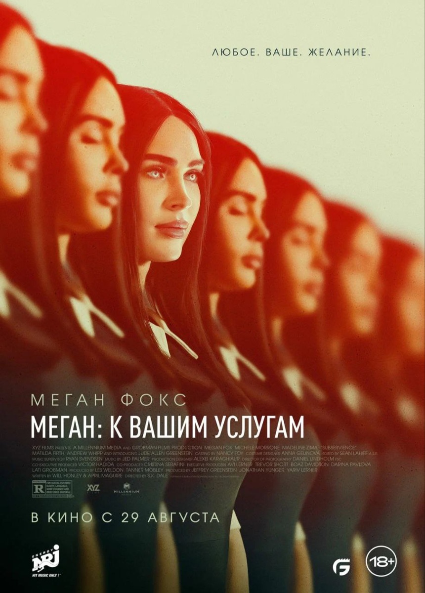 «Меган: к вашим услугам» – научная фантастика про очеловеченых роботов, а-ля «Я робот» . Вкратце о сюжете: «Пока жена лежит в больнице, для заботы о детях и работы по дому Ник покупает женоробота с искусственным интеллектом. Она прекрасно справляется со своими обязанностями, быстро учится и готова на всё, лишь бы её основной пользователь был счастлив». Но, в лучших традициях жанра, происходит сбой в программе и понеслась))) Спойлерить не буду, но посмотреть фильм стоит, рекомендую. Ну хотя бы из Меган Фокс) В оригинале фильм называется «Покорность», но наши как всегда жгут и называют фильмы как им захочется)) С маркировкой 18+ согласен, есть пикантные сцены. Не могу не обратить внимание на музыку в этой картине: очень напряжённая, давящая, нагнетающая, местами не подходит вообще к тому что происходит на экране. И ещё хочу отметить, что в титрах очень много русских имён (прям ОЧЕНЬ много) и имён из бывшей Югославии, это порадовало. Вобщем, рекомендую к просмотру всем кому нравится фанта