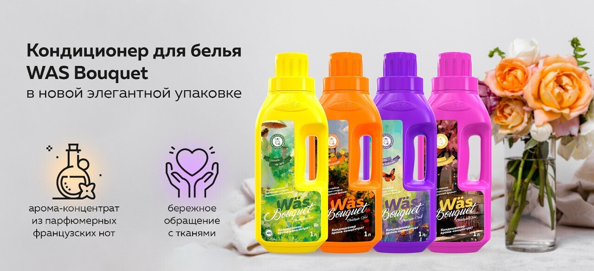 Кондиционеры WÄS: 1. Обеспечивают невероятную мягкость и бережное обращение с тканями. 2. Сохраняют свою структуру и цвет, а также приобретает устойчивый аромат, который длится на протяжении всего дня. 3. Придают белью легкость и свежесть. Особое внимание мы уделили арома-концентрату, который входит в состав кондиционера. Эта удивительная добавка создает восхитительное сочетание парфюмерных французских нот и свежести, наполняя ваши вещи нежным, но стойким ненавязчивым ароматом. Вдыхая этот аромат, вы погружаетесь в мир расслабления и гармонии, забывая о повседневной суете. Пробуя новый кондиционер для белья Вы откроете для себя истинное наслаждение от стирки, наполненное свежестью и ароматом, который вдохновляет на новые свершения. Заказать со скидкой можно на ВБ.
