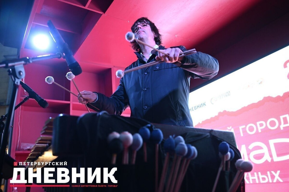 Выступление вибрафониста Алексея Чижика завершило первый городской Медиадень на «Книжных аллеях». Исполнитель порадовал публику как классическими, так и новыми композициями.