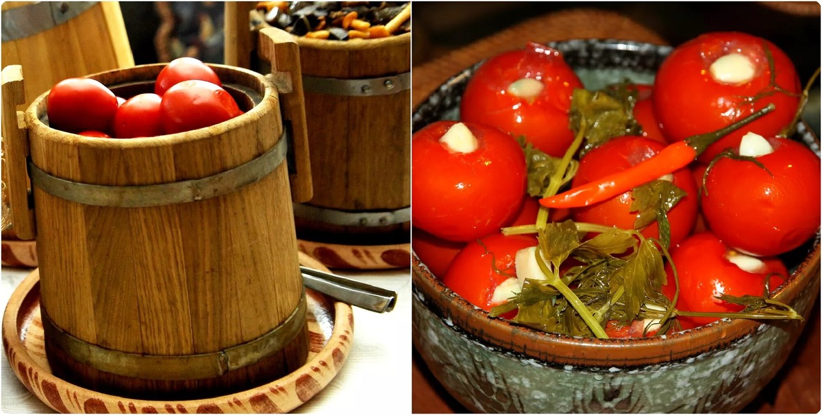 Плещется еще за окнами, несет благодатный свет август. " Август крушит, да после тешит". На сей раз я постараюсь выбрать для Вас те рецепты, о которых еще не шла речь и которые отличаются оригинальностью способа приготовления. СОЛЕНЫЕ ПОМИДОРЫ. Солить на зиму можно различные помидоры - красные, розовые, бурые, зеленые. Для засолки зрелых помидоров подходят лучше всего мелкие плоды. Прежде всего нам предстоит очистить помидоры от плодоножек, промыть их в прохладной воде и рассортировать по зрелости и размерам. Каждый сорт лучше солить в отдельной посуде. На 50 кг помидоров кладут 750 г укропа, 300 г листьев хрена, вишни, черной смородины., 6-7 головок чеснока. Хорошо добавить и другие ароматические травы - эстрагон, чабер ( по 150г). В зависимости от степени зрелости плодов делают рассол. Например, для зеленых и бурых помидоров на 10 литров воды берут 700 - 800 г соли, лучше крупной, а для красных на то же количество воды - около 1 кг соли. Запомним также, что для крупных помидор