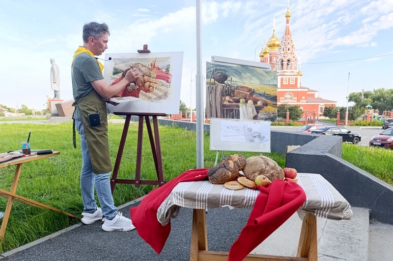 У Богоявленского собора в Кургане участники пленэра рисовали хлебный натюрморт