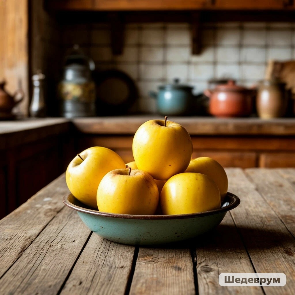 Она поставила на стол эмалированную маленькую мисочку, белую, с нарисованными на дне вишенками. А в мисочке той лежали два мочёных яблока, прозрачных, янтарно-жёлтых, упругих, до отказа наполненных чуть газированным соком.