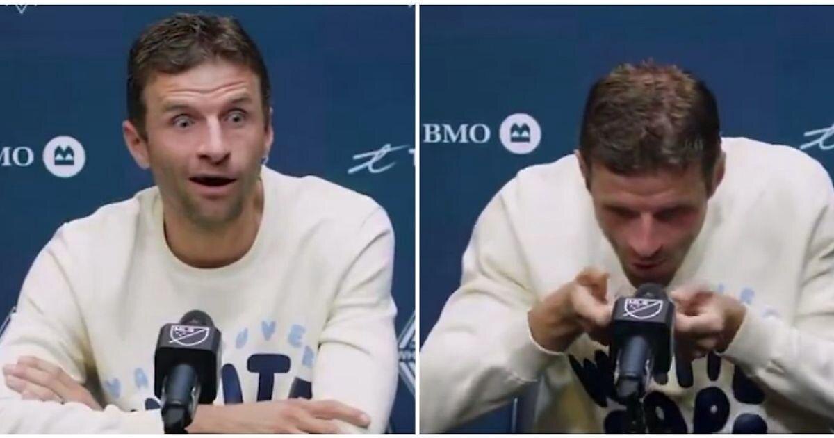 Томасу Мюллеру прекрасно в Канаде. Немец не перестает шутить с первого дня в «Ванкувер Уайткэпс» – даже первую пресс-конференцию превратил в собственный стендап. В дебютном матче гол раумдойтера отменили из-за офсайда, все же он уже зарекомендовал себя как лидера команды. Во второй игре за новый клуб Мюллер реализовал пенальти – пробил прямо под перекладину. По данным Transfermarkt, это был первый пенальти немца с декабря 2020-го, тогда он забил с точки в ворота «Атлетико» на групповом этапе ЛЧ. На послематчевой пресс-конференции Томас случайно разболтал новость о вызове Тристана Блэкмона в сборную США. Когда немец осознал, что проговорился, он выдал самую мюллеровскую реакцию из возможных: «Ну, нам будет не хватать нескольких парней. Вот Тристана сейчас вызвали в сборную США. О! [Изображает всасывание слов назад в себя]. Если сегодня он сыграет хорошо, а, матч же уже сыгран… Что есть, то есть! Я слышал то, что я слышал. Поздравляю Тристана! И поздравляю США!» Объяснить сложно, это над