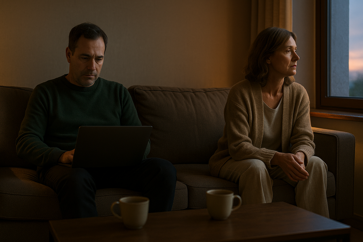 Алина и Сергей вместе 12 лет. Недавно она поняла, что они не разговаривали «про жизнь» уже больше года. Только - «по делу». Она попробовала начать разговор о планах на отпуск. Он ответил: «Решай как знаешь». И уткнулся в телефон. В этот момент ей стало очень одиноко.