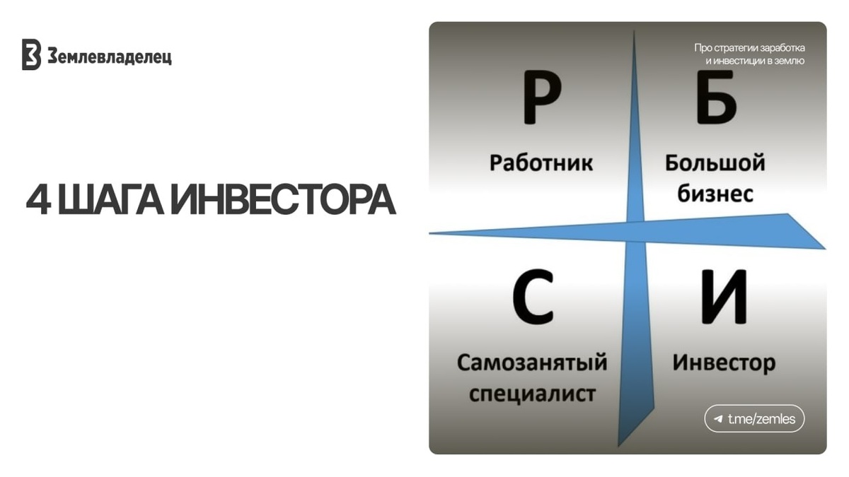Друзья-землевладельцы, я уже 15+ лет работаю с землей, и для меня это лучшая работа в мире, почему – писал недавно (https://t.me/zemles/1326). Но кроме работы я ещё и рассматриваю землю как самую надёжную и выгодную инвестицию. Кто-то вкладывается в акции, кто-то в крипту — эти варианты я тоже проходил. И по итогу пришел к инвестициям в землю, потому что это реальность, к которой можно прикоснуться. Земля живая, осязаемая и вечная. По моему опыту и опыту знакомых, земельные инвесторы проходят примерно 4 стадии: 1️⃣ Земля для себя. Берешь первый участок для дома или дачи. Учишься ухаживать, оформлять документы, понимать границы. Видишь, как растет стоимость земли, начинаешь аккуратно присматриваться к земле рядом, изучать, как меняется цена и как распродаются ликвидные участки. 2️⃣ Земля “про запас”. Берешь участки уже на последующую продажу — 1–3 штук в год. Чувствуешь первый вкус прибыли, азарт. Ну и ловишь первые ошибки, которые становятся самым ценным — личным опытом. 3️⃣ Земельный