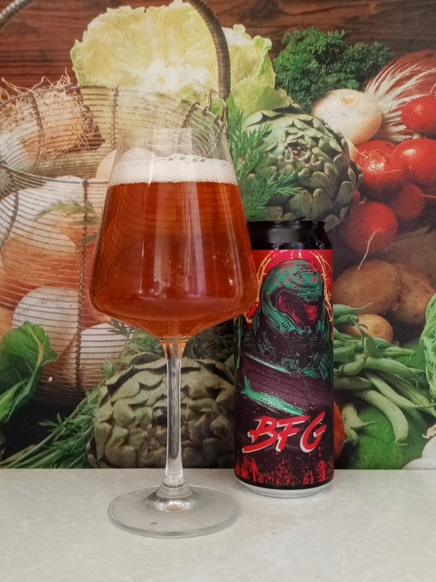 Сорт подмосковной крафтовой пивоварни Selfmade Brewery из Солнечногорска, на создание которого пивоваров вдохновил Doom - без преувеличения легендарная компьютерная игра, в который многие присиживали дни напролёт. Кто играл, тот меня поймёт! "BFG" Культовое оружие геймеров Big F***g Gun снова с нами! Однократный выстрел плазменным зарядом наносит опустошающий удар по противнику и позволяет одним нажатием курка решить множество проблем на поле боя. Так и наш бестселлер поможет вам решить целый спектр задач после трудовых будней всего лишь одной пинтой. Крепкий, плотный и сладковатый эль в стиле Double IPA с обильной, но не доминирующей горечью, большим количеством тропических фруктов во вкусе, обязательно понравится всем почитателям крепких сортов пива. Пиво светлое "СБ БФГ" непастеризованное, нефильтрованное, неосветлённое Состав: вода подготовленная, солод пивоваренный ячменный светлый, карамельный, глюкоза, хмель гранулированный, дрожжи. Хмели: Warrior, Amarillo, Simcoe, Citra. Объем