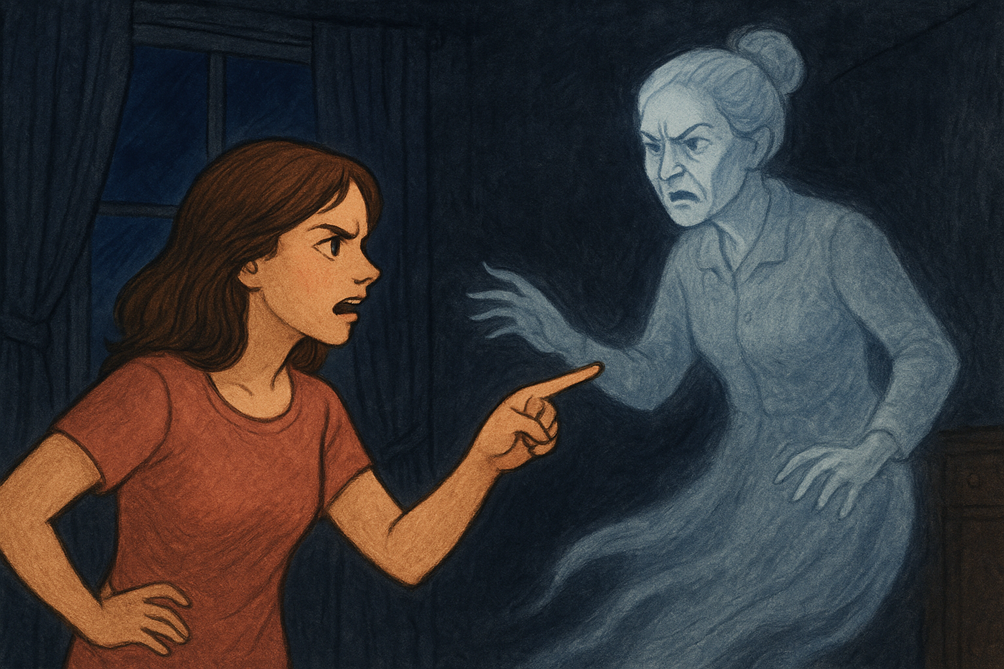 ― И что, что умерла? ― хмыкнул призрак. ― Но Петька ― мой сынок. Я его вырастила! Кормила, в школу водила. А ты ему что? Борщ пересоленный? Простыни со складкой?