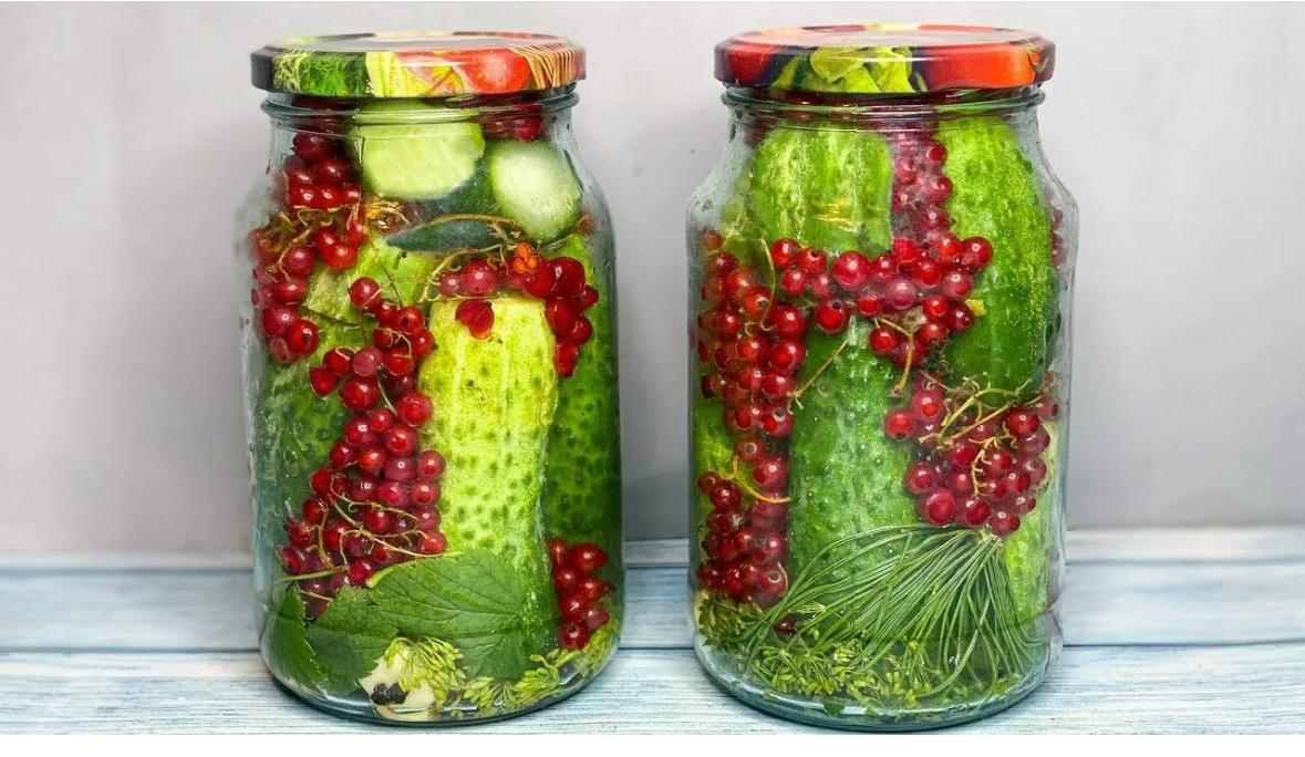 Маринованные огурцы с красной смородиной. Закрутки на зиму.