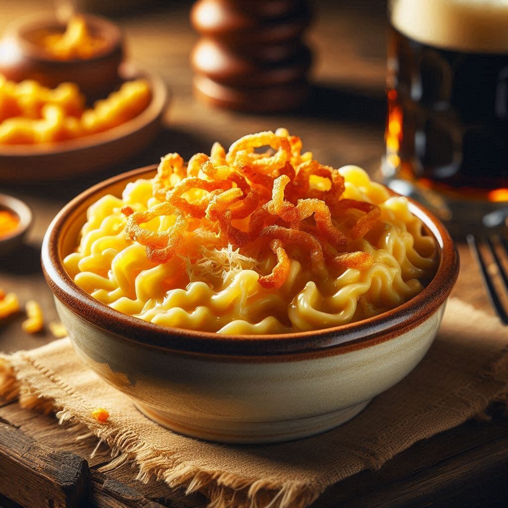 Этот сырный карбонар по-швабски — главное блюдо для уютного вечера. Мягкая яичная лапша и хрустящий жареный лук создают идеальный дуэт.